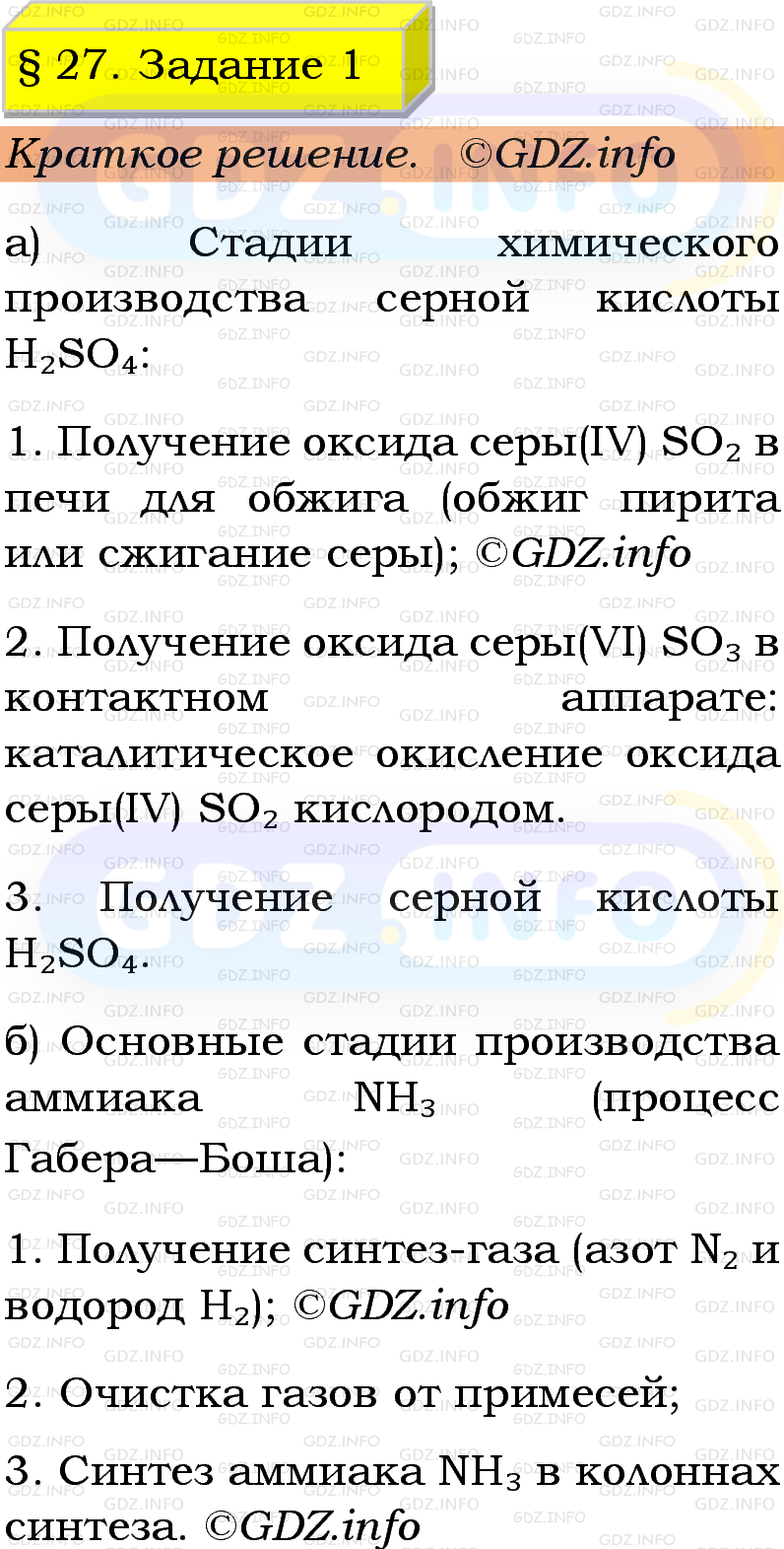 ГДЗ (готовое домашние задание из решебника) по Химии 9 класса авторов Габриелян Остроумов, Сладков. Просвещение, 2023-2025г на Номер №1, § 27. Получение важнейших химических соединений неметаллов.