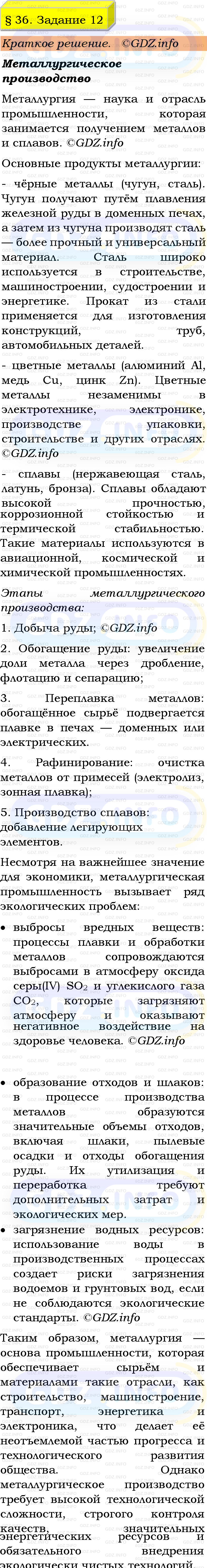 ГДЗ (готовое домашние задание из решебника) по Химии 9 класса авторов Габриелян Остроумов, Сладков. Просвещение, 2023-2025г на Номер №12, § 36. Металлы в природе. Понятие о металлургии.