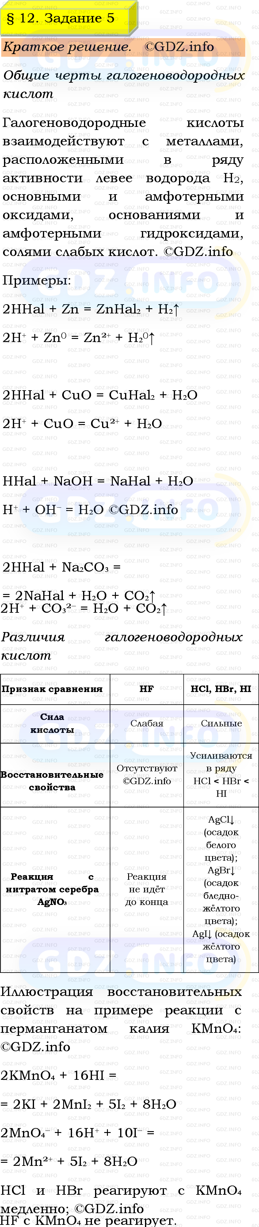 ГДЗ (готовое домашние задание из решебника) по Химии 9 класса авторов Габриелян Остроумов, Сладков. Просвещение, 2023-2025г на Номер №5, § 12. Соединения галогенов.