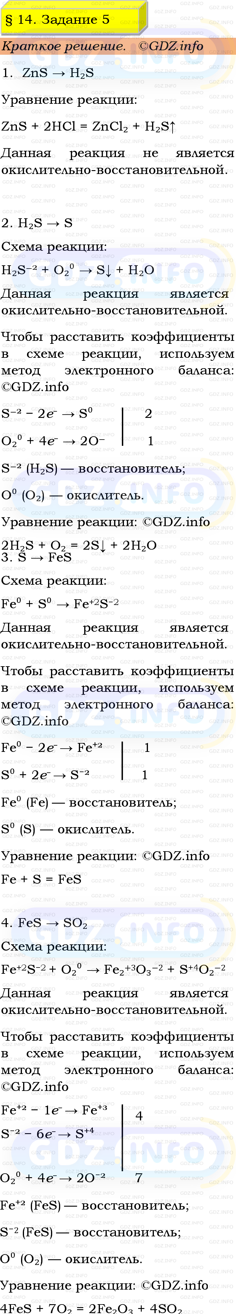 ГДЗ (готовое домашние задание из решебника) по Химии 9 класса авторов Габриелян Остроумов, Сладков. Просвещение, 2023-2025г на Номер №5, § 14. Сероводород и сульфиды.