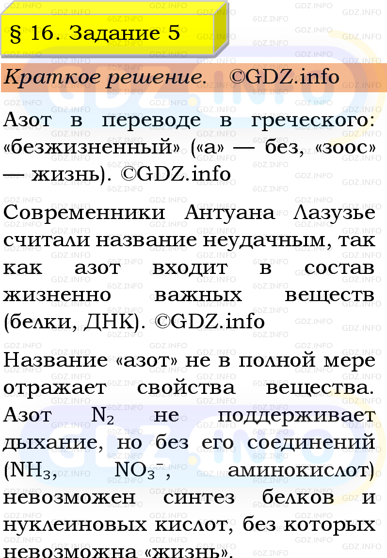 ГДЗ (готовое домашние задание из решебника) по Химии 9 класса авторов Габриелян Остроумов, Сладков. Просвещение, 2023-2025г на Номер №5, § 16. Общая характеристика элементов VA-группы. Азот.