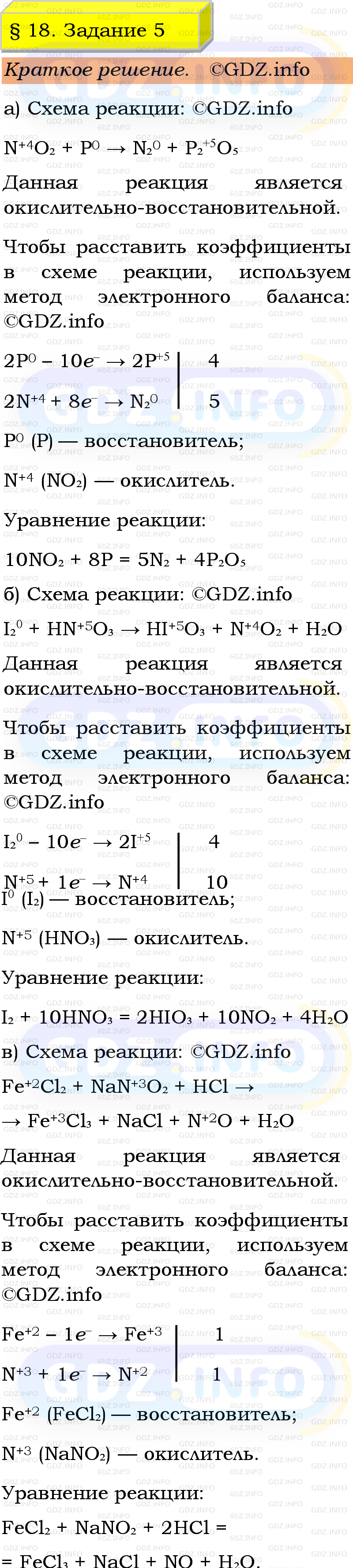 ГДЗ (готовое домашние задание из решебника) по Химии 9 класса авторов Габриелян Остроумов, Сладков. Просвещение, 2023-2025г на Номер №5, § 18. Кислородные соединения азота.