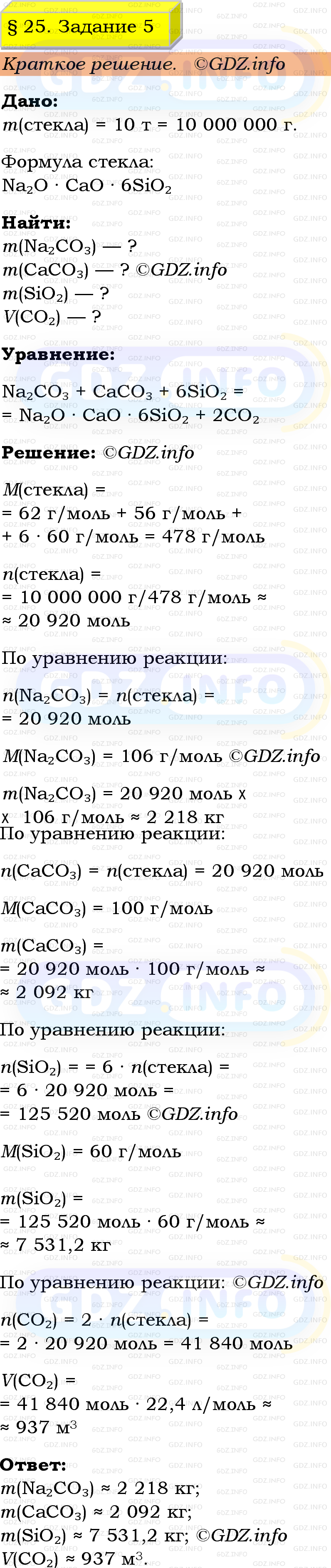 ГДЗ (готовое домашние задание из решебника) по Химии 9 класса авторов Габриелян Остроумов, Сладков. Просвещение, 2023-2025г на Номер №5, § 25. Силикатная промышленность.