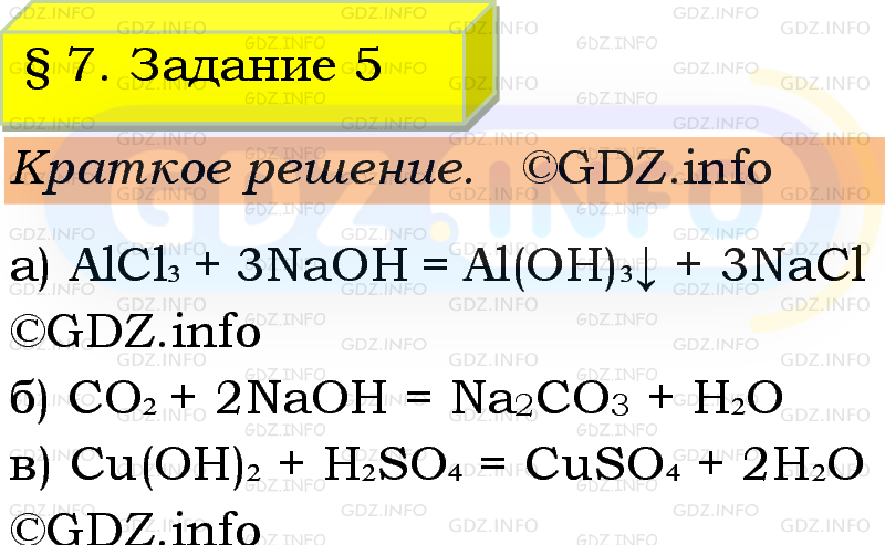 ГДЗ (готовое домашние задание из решебника) по Химии 9 класса авторов Габриелян Остроумов, Сладков. Просвещение, 2023-2025г на Номер №5, § 7. Химические свойства оснований как электролитов..