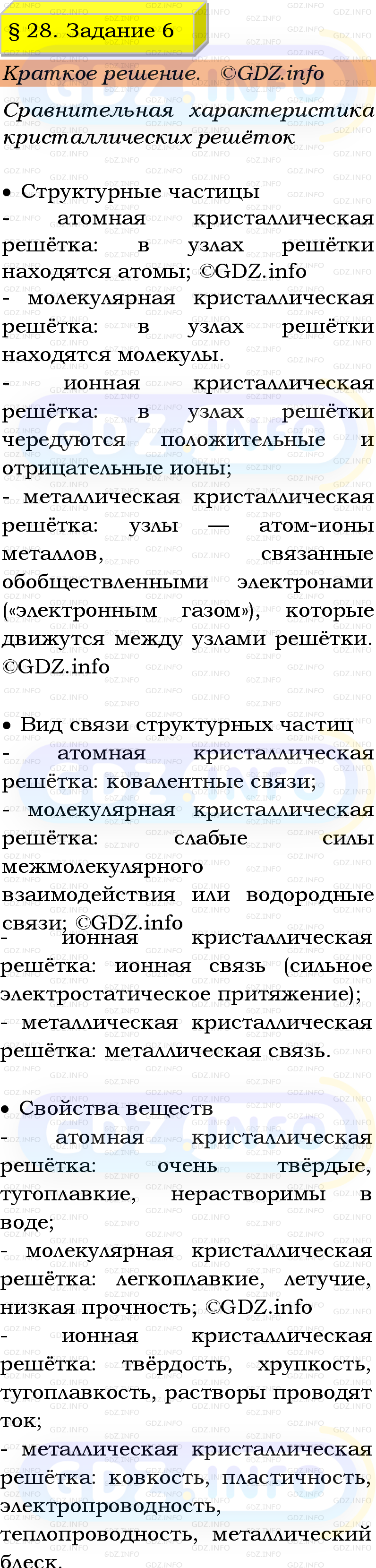 ГДЗ (готовое домашние задание из решебника) по Химии 9 класса авторов Габриелян Остроумов, Сладков. Просвещение, 2023-2025г на Номер №6, § 28. Общая характеристика металлов.