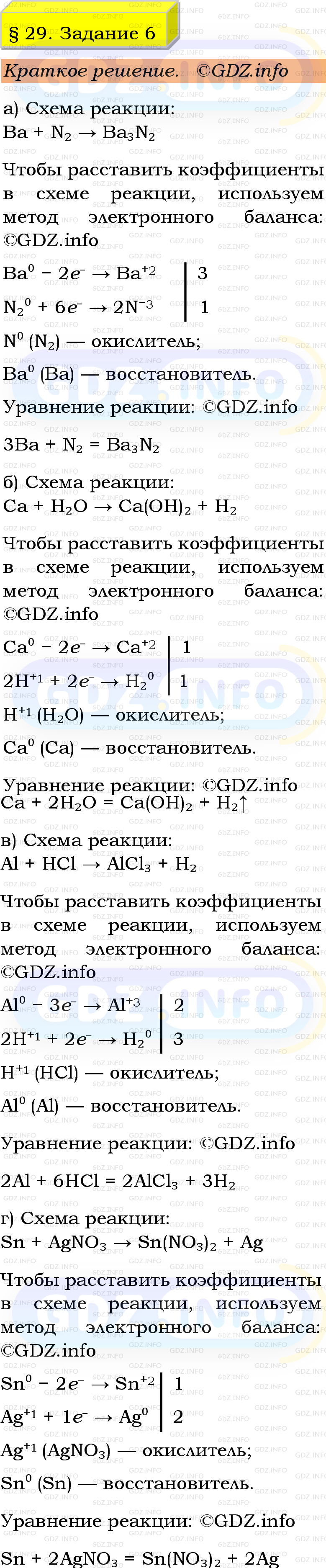 ГДЗ (готовое домашние задание из решебника) по Химии 9 класса авторов Габриелян Остроумов, Сладков. Просвещение, 2023-2025г на Номер №6, § 29. Химические свойства металлов.