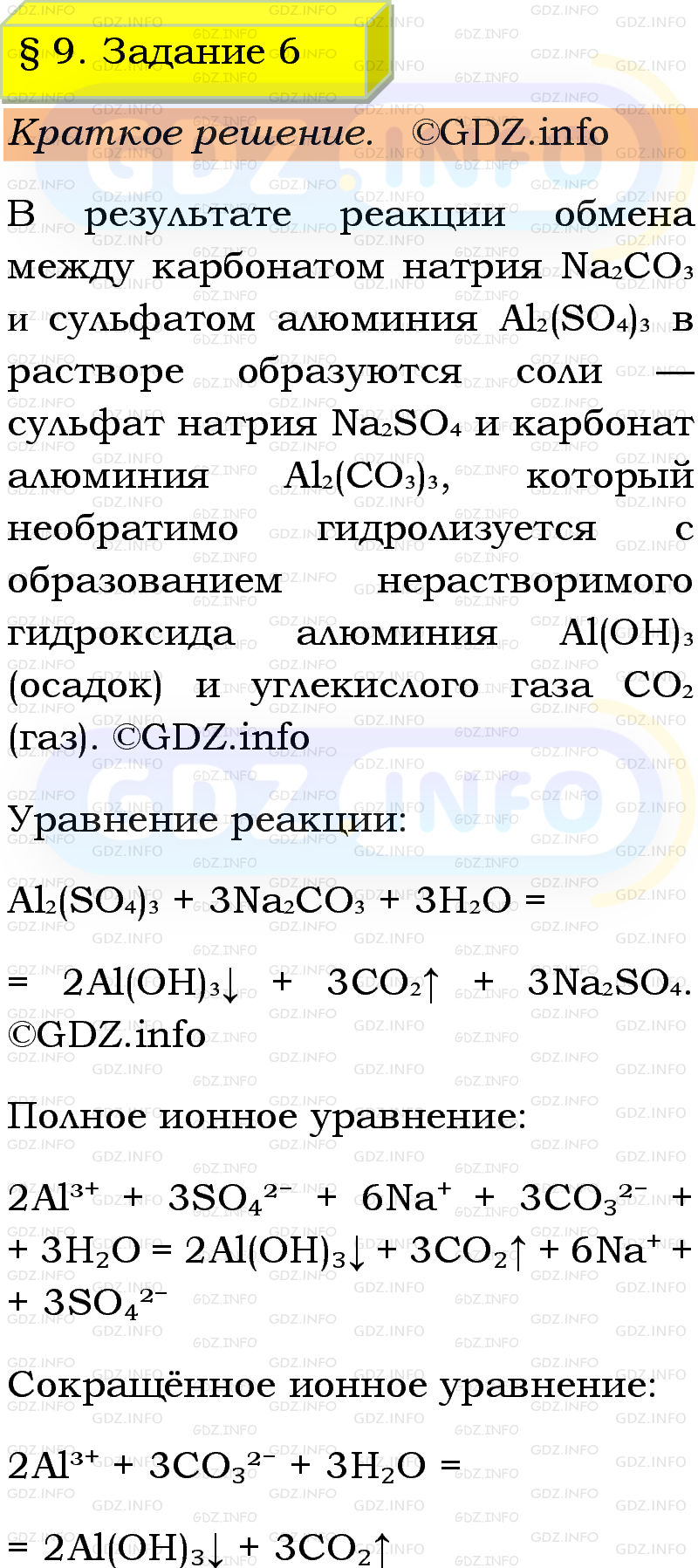 ГДЗ (готовое домашние задание из решебника) по Химии 9 класса авторов Габриелян Остроумов, Сладков. Просвещение, 2023-2025г на Номер №6, § 9. Гидролиз солей..