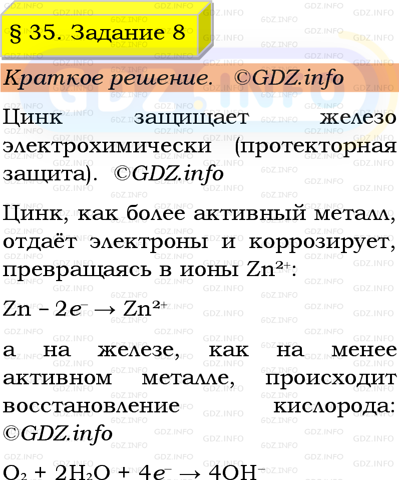 ГДЗ (готовое домашние задание из решебника) по Химии 9 класса авторов Габриелян Остроумов, Сладков. Просвещение, 2023-2025г на Номер №8, § 35. Коррозия металлов и способы защиты от неё.