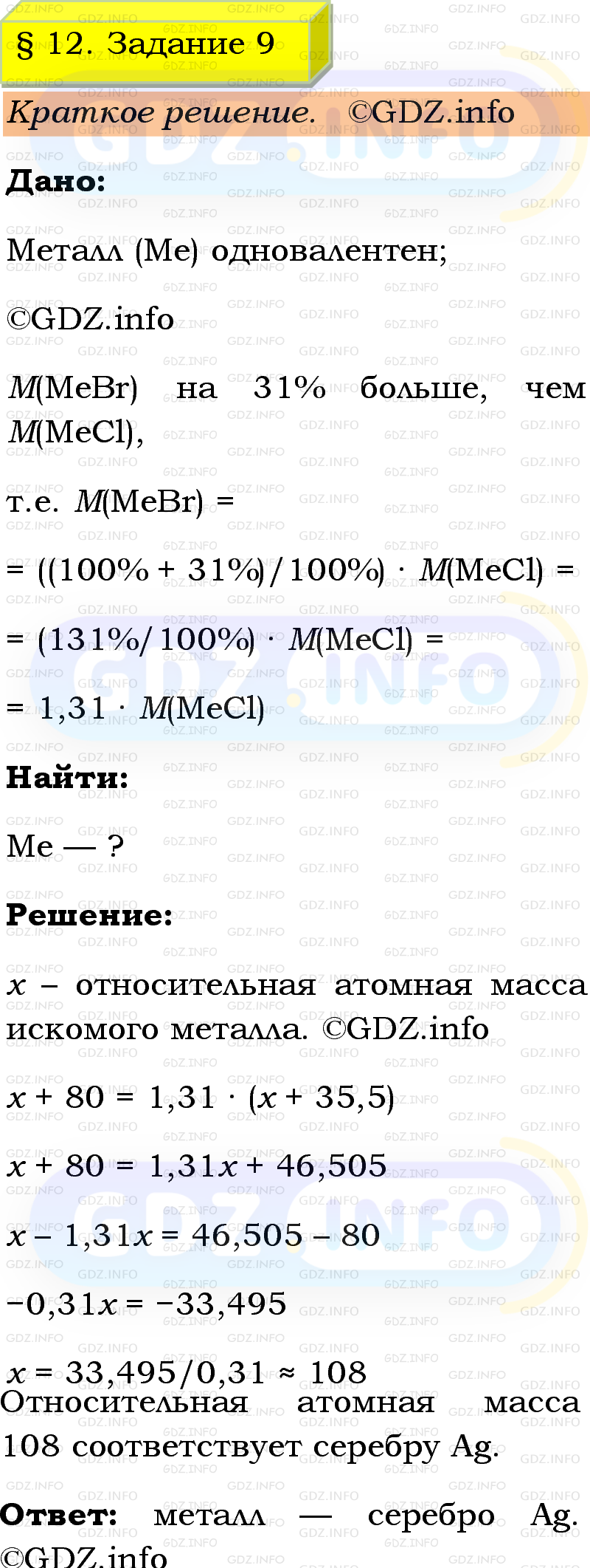 Ответ на Номер №9, Параграф 12 из ГДЗ по Химии 9 класс: Габриелян, Остроумов, Сладков