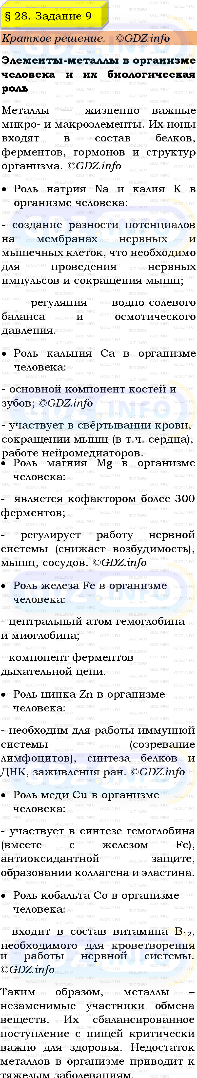ГДЗ (готовое домашние задание из решебника) по Химии 9 класса авторов Габриелян Остроумов, Сладков. Просвещение, 2023-2025г на Номер №9, § 28. Общая характеристика металлов.